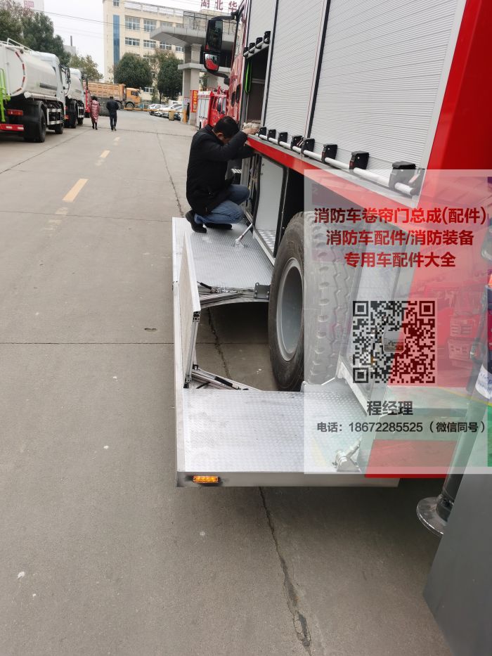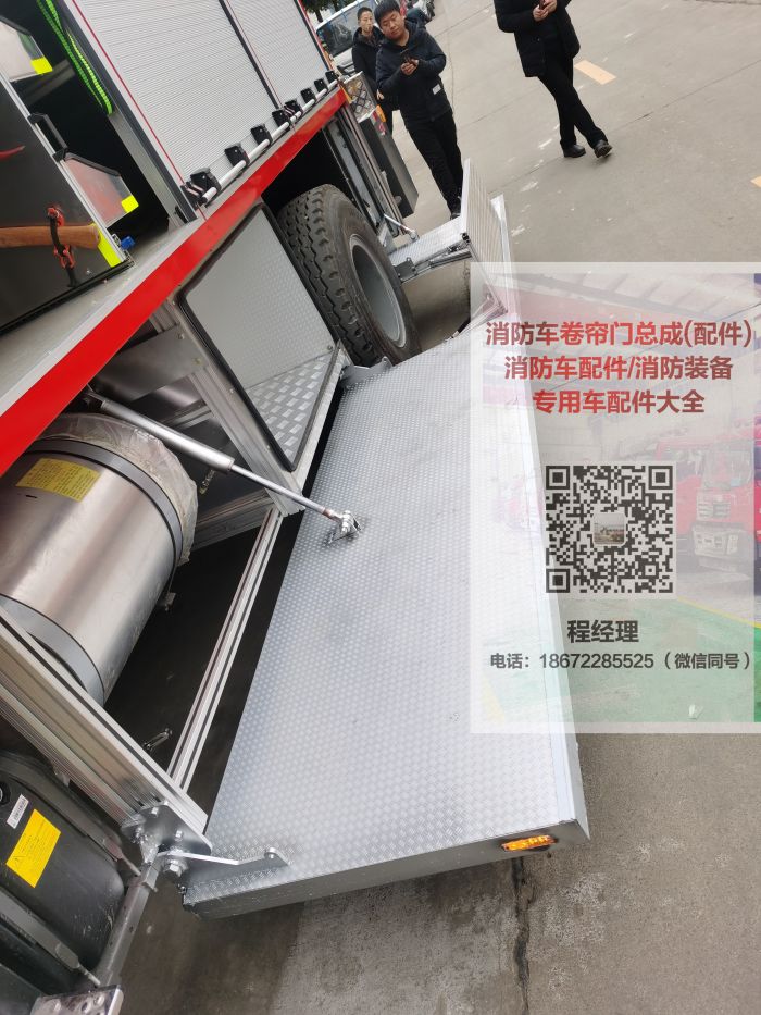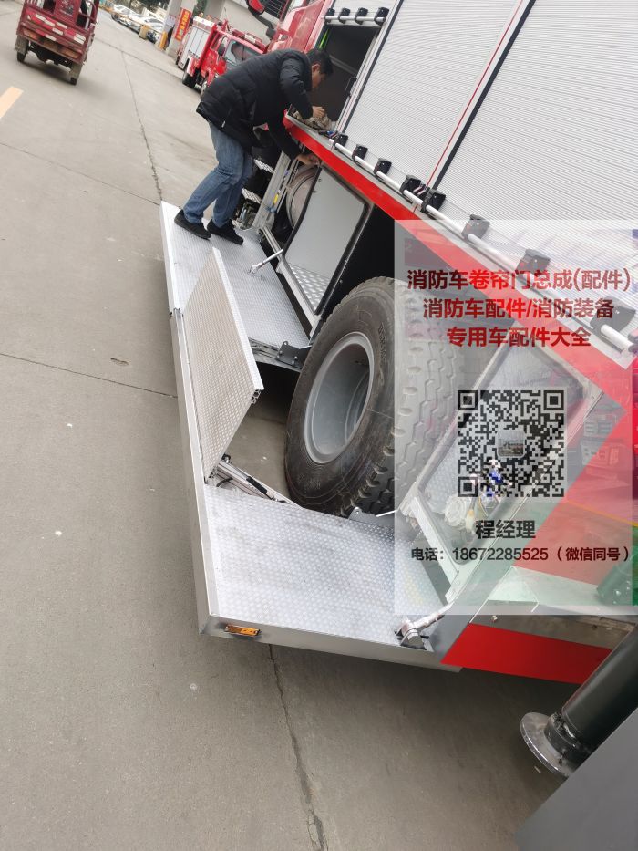 消防車折疊踏板采用的有專門的合頁(yè),踏板的承載能力很強(qiáng),一般是在300公斤以上。其中高端的消防車上面還安裝的有